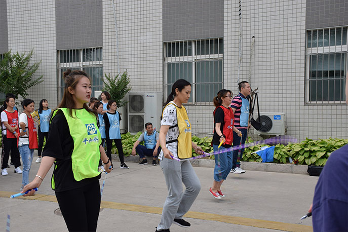 此次比賽分別是拔河比賽、踢毽子、跳繩、五毛一塊、面面相聚、搭橋過河、勤勞的小蜜蜂等項(xiàng)目?;顒?dòng)最先開始的熱身比賽拔河,在比賽中,每隊(duì)隊(duì)員使出了渾身解數(shù),全力以赴也要分個(gè)高下。哪怕拼命向后的身體被對(duì)手逐漸拽向前方,哪怕宣告失敗的哨聲有些尖銳,哪怕失落的情緒讓人惆悵,但新的比賽開始,場上場下又都瞬間充滿了斗志,“加油,加油!”的呼聲震耳欲聾。