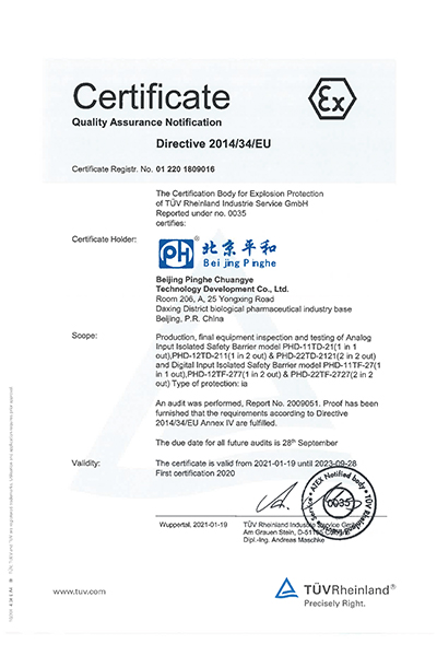 隔離式安全柵功能安全(SIL3)認(rèn)證證書