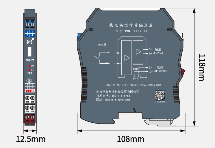 熱電偶輸入溫度變送器,可將熱電偶(TC)發(fā)出的直流信號隔離轉(zhuǎn)換為直流信號,此產(chǎn)品內(nèi)置冷端補償功能,可智能組態(tài),熱電偶的實際量程范圍可通過計算機軟件進行設定。具有斷線報警功能和超出量程范圍報警功能。該產(chǎn)品需獨立供電,電源、輸入、輸出三端隔離。