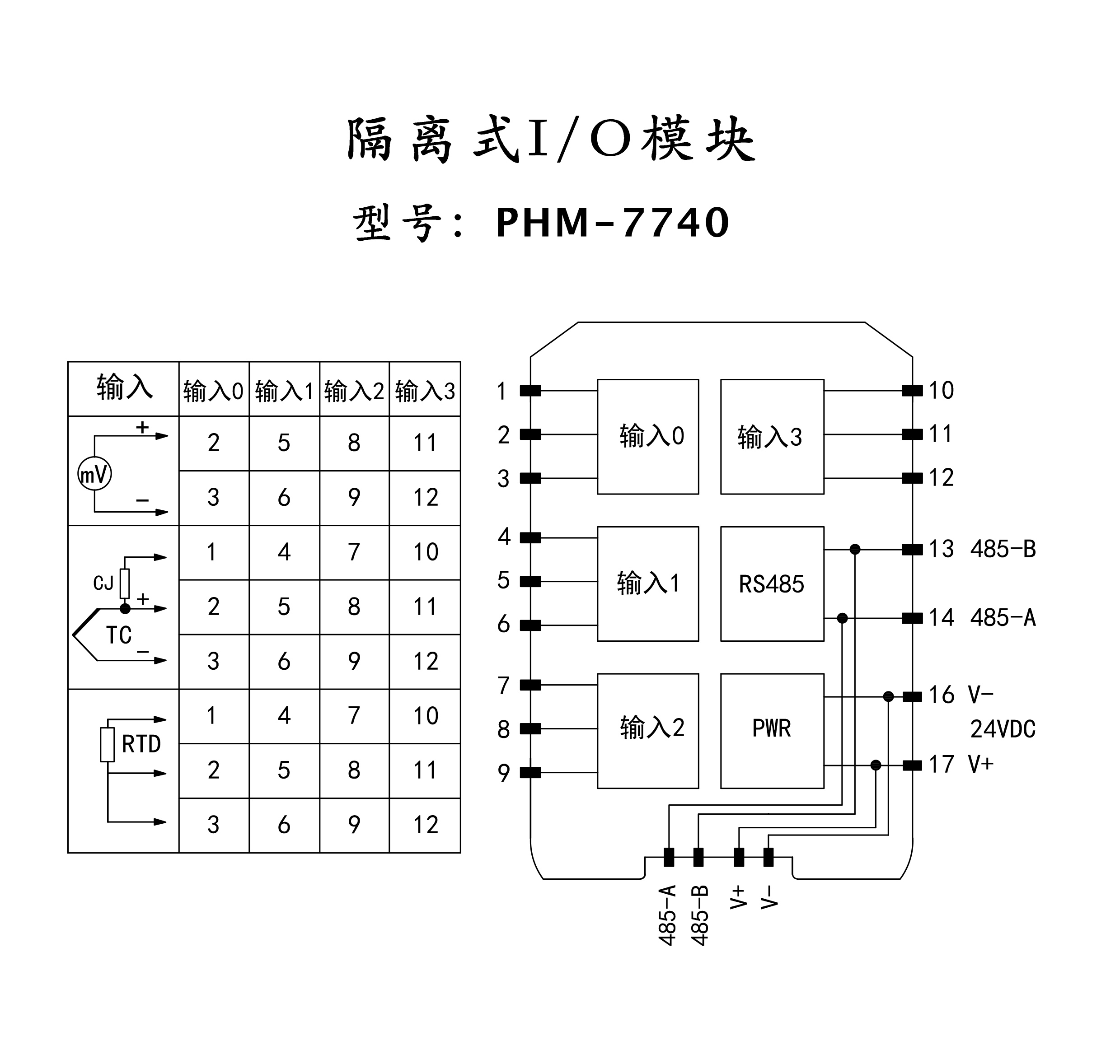 將工業(yè)現(xiàn)場(chǎng)的四路熱電偶/熱電阻/電阻/mV轉(zhuǎn)換為數(shù)字信號(hào),按照MODBUS規(guī)約, 通過(guò)RS 485通訊方式, 將數(shù)字信號(hào)提供給PHM-7100, PLC或上位機(jī)等控制器或數(shù)據(jù)采集系統(tǒng)。與傳統(tǒng)的PLC+隔離器的輸出模式比較,減少了兩次轉(zhuǎn)換誤差,在顯著提高轉(zhuǎn)換精度的同時(shí),增加了系統(tǒng)的穩(wěn)定性和抗干擾性。