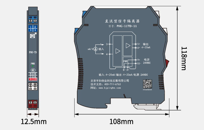 PHG-11TD系列模擬量輸入(出)信號隔離器,可實現(xiàn)將電流或電壓信號經(jīng)隔離、轉(zhuǎn)換為電流或電壓信號輸出,輸入、輸出參數(shù)可根據(jù)用戶需求定制。