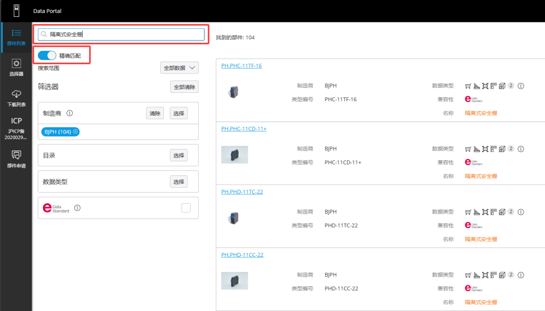 在Eplan Data Portal平臺中,點(diǎn)擊制造商選擇按鈕,選擇北京平和logo,點(diǎn)擊應(yīng)用。