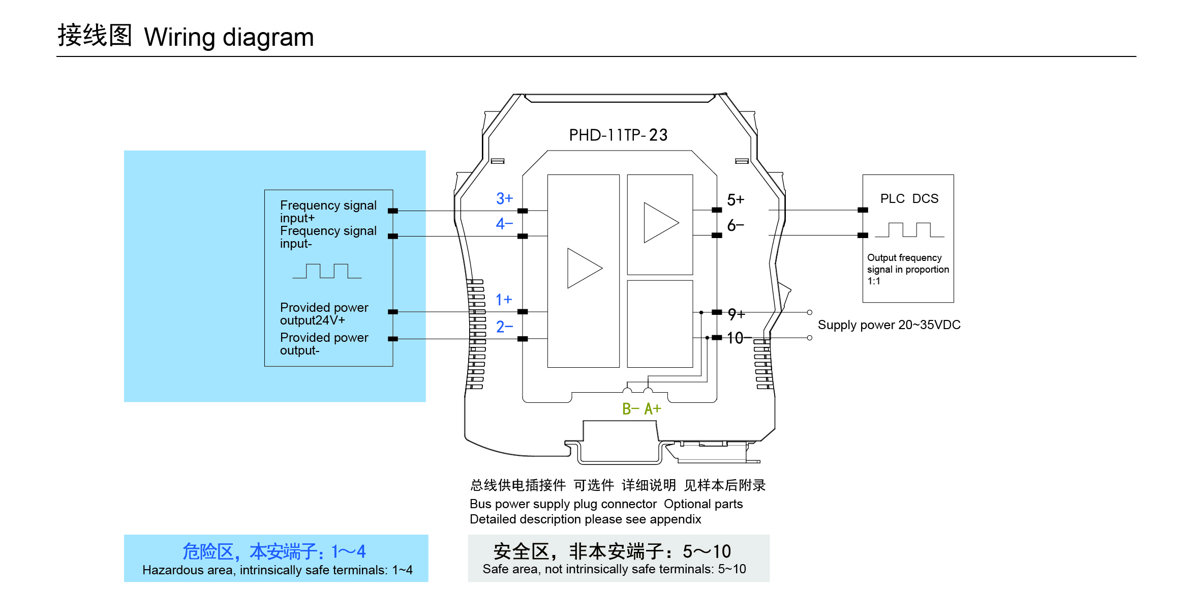 頻率信號輸入隔離式安全柵,可實(shí)現(xiàn)將危險區(qū)儀表的頻率信號1:1傳輸?shù)桨踩珔^(qū),并給危險區(qū)的現(xiàn)場儀表提供隔離配電電源(12V或24V)。