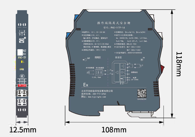 | 外形尺寸 | 厚12.5mm×寬108mm×高118mm |