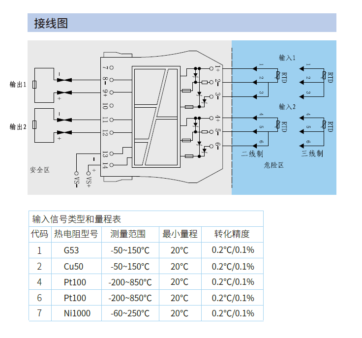 | 適用的現(xiàn)場設(shè)備 | 二線或三線熱電阻G53、Cu50、Pt100、Pt1000、Ni1000 |