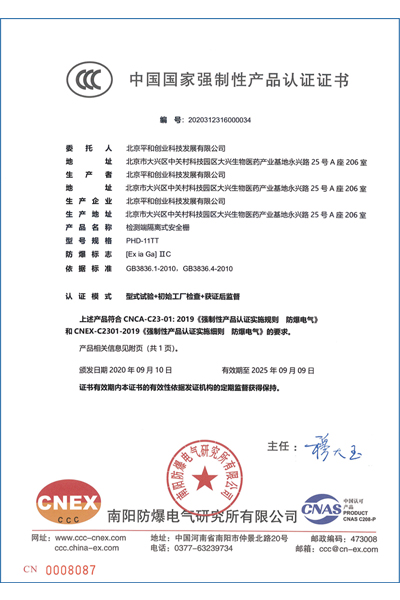 | 認證機構 | 國家防爆電氣產(chǎn)品質(zhì)量監(jiān)督檢驗中心CQST認證 |