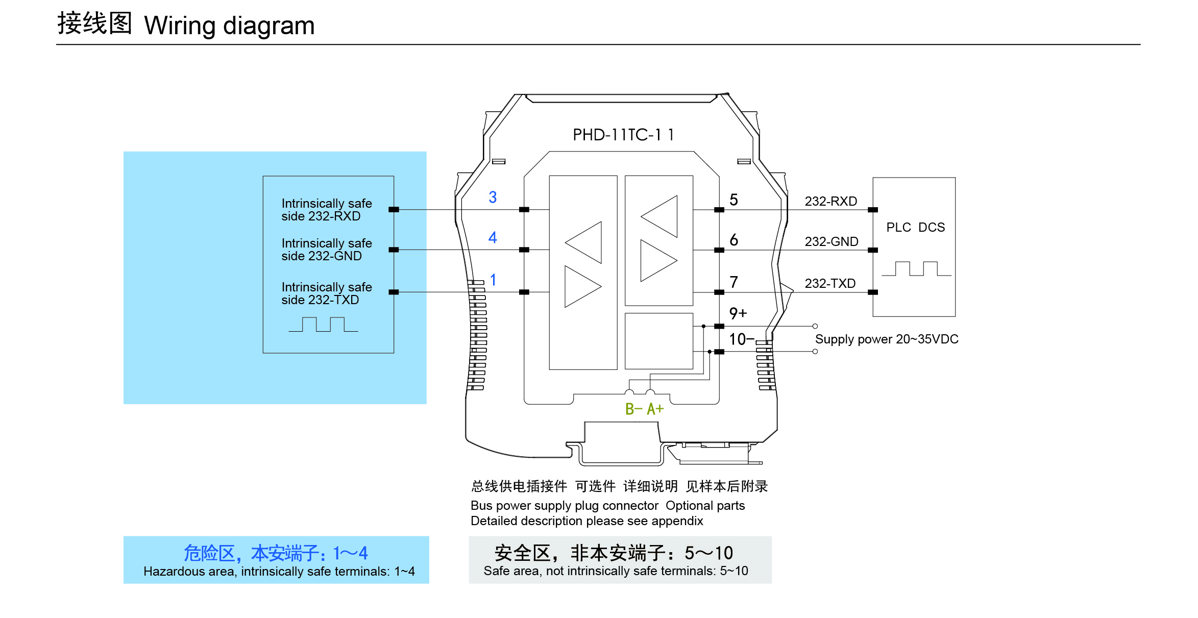 PHD-11TC-11通訊信號(hào)輸入隔離式安全柵,可實(shí)現(xiàn)RS-232數(shù)字信號(hào)在危險(xiǎn)區(qū)和安全區(qū)的雙向通信。