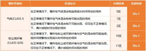 對于不同類型的爆炸性介質(zhì),我國和國際上都有明確的分類體系,例如將氣體分為 IIA、IIB 和 IIC 類別,其中 IIC 是最嚴格的;而美國和加拿大則將爆炸性物體分為三個類別(CLASS I 氣體和蒸氣, CLASS II 塵埃, CLASS III 纖維)并進一步細分為組(Group)。